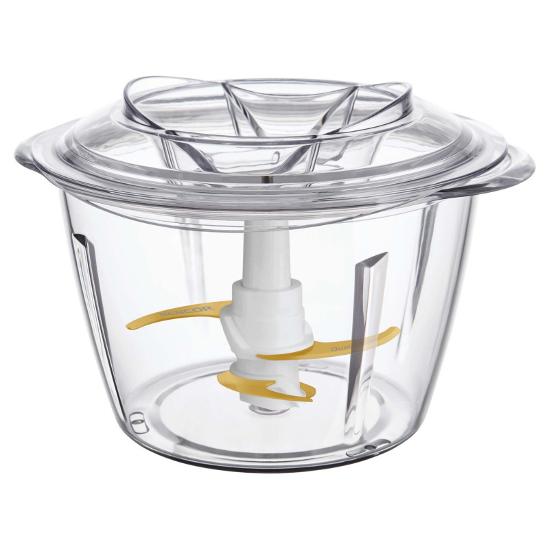 Snažan za sjeckanje mesa, voća, povrća i drugih vrsta hranePogodno za pripremu pirea i dječje hrane4 lopatice od titana za smanjenu oksidacijuVelika staklena posuda (kapaciteta 1 000 ml) pogodna za pranje u perilici posuđaJednostavno umetnite sastojke i pritisnite gumb za početak sjeckanjaGumena baza protiv klizanja za lakše rukovanjeKompaktni i ergonomski dizajnSigurnosni prekidačSnaga: 800 W
