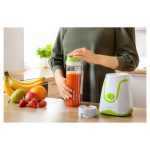 •Idealno za pripremu svježih voćnih i fitness napitaka, milkshakeova, miješanih napitaka, koktela, juha, salsa, umaka, dječje hrane• Boca za miješanje može se ukloniti i koristiti kao putna boca• Poklopac s izljevom za piće sprječava slučajno izlijevanje• Lako se čisti: Boca, poklopac i oštrice su sigurnaza perilicu posuđa• Jedna 0,6-litrena uklonjiva boca otporna na udarce izrađena od PCTG materijala (bez BPA)• Pulsni prekidač za učinkovito miješanje• Visokokvalitetne uklonjive četiri oštrice od nehrđajućeg čelika s premazom od titana – Sprječavanje gubitka enzima i vitamina – Smanjenje oksidacije smoothiejaNutrija• Izvanredna stabilnost zahvaljujući usisnim čašama• Boce pogodne za držaččaše za automobil• Ulaz snage: 500 W• Napon i frekvencija: 220-240 V, 50/60 Hz• TRITAN lopatice