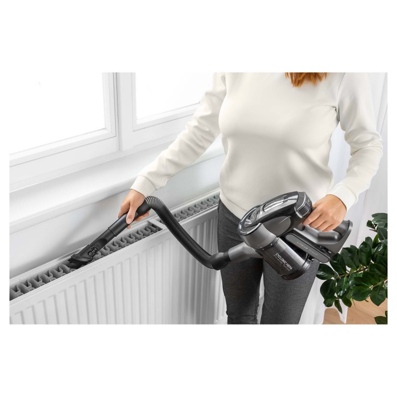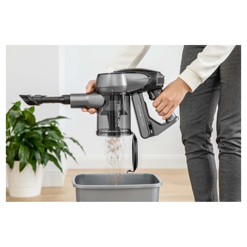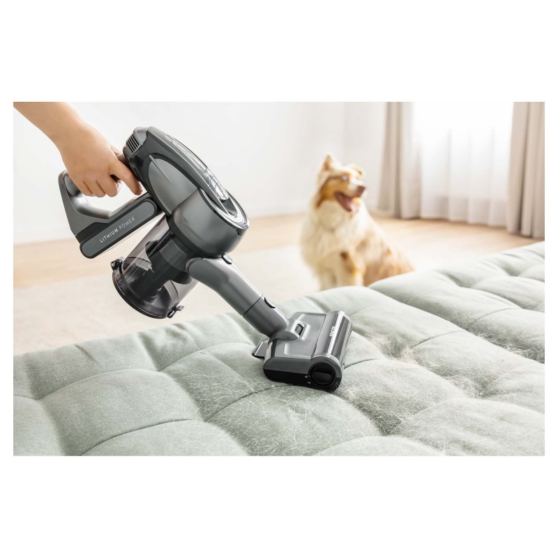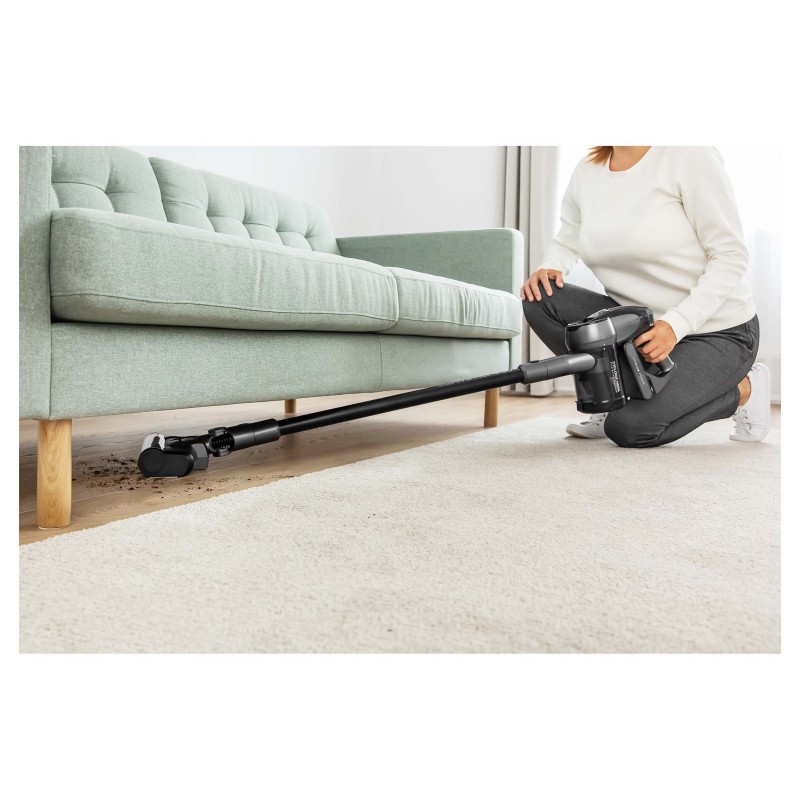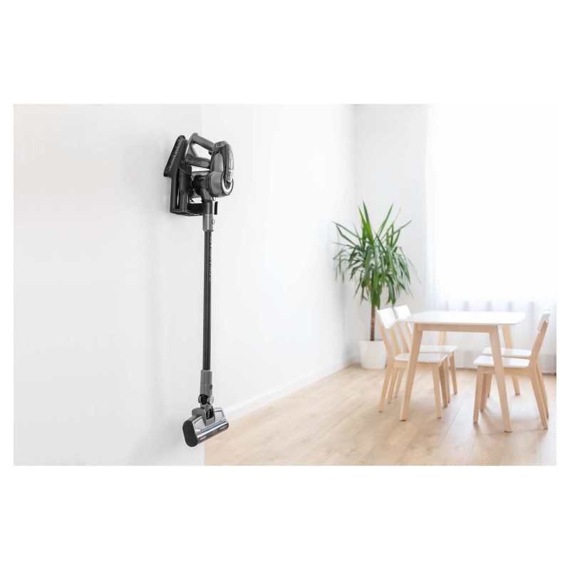 Ovaj 4-u-1 štapni usisavač pokreće najsuvremeniji digitalni BLDC motor od 400 W koji jamči izvrsne rezultate čišćenja. SVC 0725BK je lagan, tih i jednostavan za upravljanje, što ga čini idealnim uređajem za svakodnevno čišćenje svih vrsta površina ili područja visokog dosega na visini. Funkcija brisanja osigurava savršeno čiste tvrde podove! Uklonjiva jedinica zajedno sa širokim rasponom dodataka omogućuje vam brzo uklanjanje prljavštine i prašine s namještaja, stola ili u automobilu. Kada je spojen na mini motoriziranu četku CAT&DOG, možete jednostavno usisati svu dlaku kućnih ljubimaca, dok integrirano UV svjetlo dezinficira sve površine koje treba očistiti. HEPA ciklonski sustav filtracije, izvrsna upravljivost i mnoštvo dodataka čine ga vrhunskim izborom za svako kućanstvo. ZNAČAJKE • Bežični 4-u-1 štapni usisavač s odvojivom ručnom jedinicom i funkcijom brisanja • Visokoučinkoviti, dugotrajni digitalni motor sa 400W snage • Snažna Li-ion baterija od 25,2 V visokog kapaciteta od 2500 mAh • Kratko vrijeme punjenja (4 sata) i dugo vrijeme rada (do 50 minuta) • HEPA ciklonski sustav filtracije na tri razine • Rotirajuća četka s neovisnim motorom osigurava izvrsne rezultate na bilo kojoj vrsti poda i poboljšava usisavanje prljavštine s tepiha • Odvojiva ručna jedinica za praktično uklanjanje prljavštine i prašine s namještaja, stolova ili čišćenje automobila. • Cat&Dog Mini motorizirana četka s UV-C dezinfekcijskim svjetlom za odvojivu ručnu jedinicu savršen je alat za dubinsko temeljito čišćenje tapeciranog namještaja, madraca ili autosjedalica te za uklanjanje dlaka kućnih ljubimaca. • Tehnologija od 360° omogućuje pristup svakom kutu od poda do stropa • Izvrsna upravljivost i upravljivost oko namještaja zahvaljujući zakretnoj glavi za 180° i maloj težini • Tehnologija bez vrećice • XL spremnik za prašinu zapremine 0,5 l • 3 brzine rada: turbo, velika brzina ili produženo vrijeme usisavanja • LED indikator napunjenosti baterije • Baza za punjenje za praktično pohranjivanje usisavača s integriranim držačem pribora • Razina buke: 79 dB Kombinacija snažnog digitalnog BLDC motora od 400 W i tri-razinskog ciklonskog HEPA sustava filtracije osigurava snažnu snagu usisavanja i savršeno čist zrak koji napušta usisivač. INOVATIVNI 400 W DIGITALNI BLDC MOTOR Visoke performanse i snažno usisavanje zahvaljujući 100.000 o/min. Manje rotirajućih dijelova produljuje vijek trajanja motora. ČIŠĆENJE Funkcija brisanja osigurava savršeno čist pod! Mokro brisanje uklanja i najsitnije čestice, ostavljajući vaše podove besprijekornim. CAT&DOG MINI ČETKA S UV SANITACIJOM CAT&DOG mini četka s UV-C svjetlom za dezinfekciju vrhunski je alat za uklanjanje dlačica i temeljito čišćenje tapeciranog namještaja ili autosjedalica. UV-C LAMPA Kada se jedinica četke nadopuni UV-C lampom, uklanja potencijalne zarazne organizme s očišćenih površina dvostruko većom snagom. PRIBOR • 1. ZIDNI PUNJAČA • 2. MEKA ČETKA ZA BRISANJE PRAŠINE I POLICI ZA KNJIGE • 3. KOMBINACIJSKA ČETKA ZA TAPECIRANI NAMJEŠTAJ I PRŠINU • 4. ČETKA ZA PRŠINU • 5. FLEKSIBILNO CRIJEVO • 6. VIŠEKUTNI NASTAVAK ZA ČETKE • 7. RUČNA JEDINICA S MINI ČETKOM ZA CAT & DOG • 8. JEDINICA ZA BRISANJE SA 5X KRPOM ZA BRISANJE