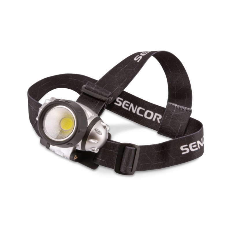 Svjetlo za glavu s COB LED-om snage 3 W. Kućište je izrađeno od lagane i izdržljive plastike. Rukovanje je olakšano podesivom šarkom s zaključavanjem i prilagodljivim remenom za glavu. Idealno za osvjetljenje na kraćim udaljenostima bez upotrebe ruku. 2 intenziteta rasvjete od 100% i 50%. Tehnički parametri: Materijal: plastika Funkcija: 100% / 50% / FLASH / OFF Napajanje: 4,5 V Tip baterije: 3x AAA Svjetlosni protok: 150 lm Vrijeme osvjetljenja: 4 h – Afterglow: 10 m Stupanj zaštite: IP 20 Težina: 79 g Dimenzije: 75 x 65 x 55 mm