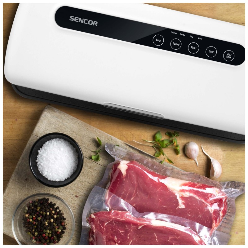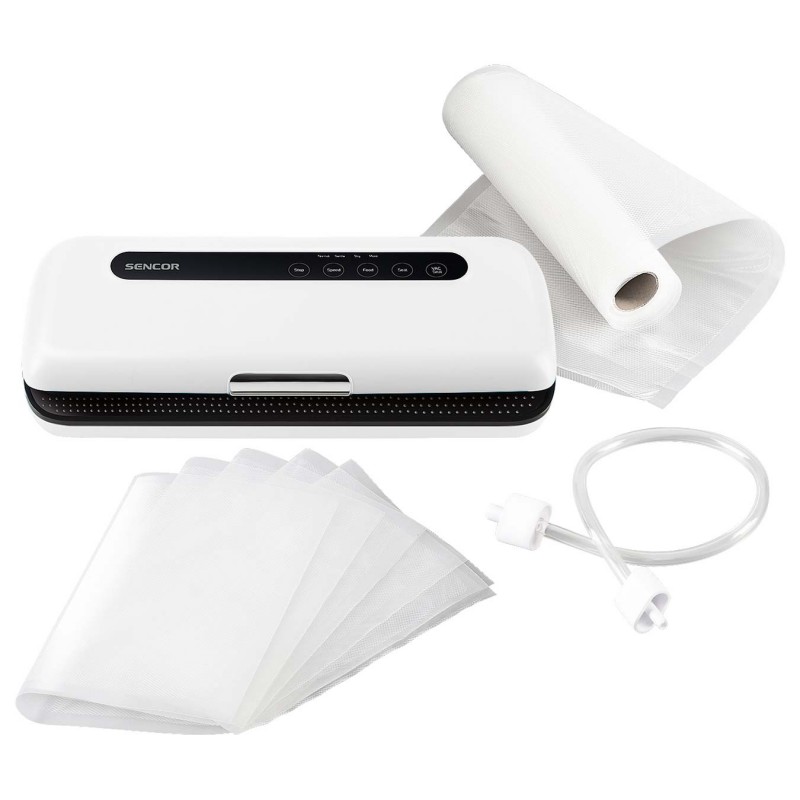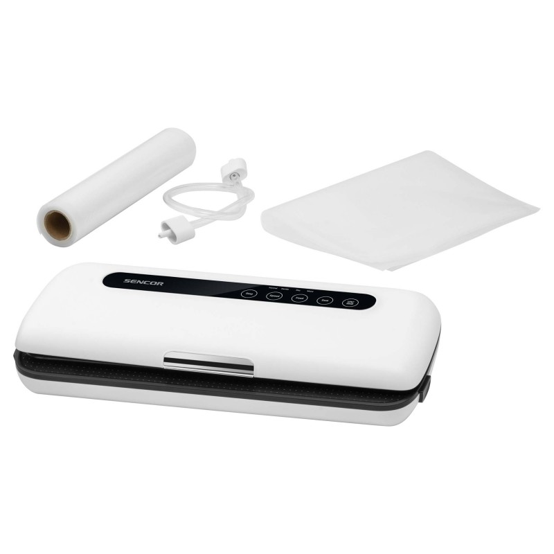 Vakuumska brtva će lako održati hranu svježom i sačuvati njenu kvalitetuProduljava vrijeme pohrane do pet putaVakuumsko zatvaranje hrane omogućuje zadržavanje svih sastojaka i originalne arome svježe hraneSprječava isušivanje hrane / gubitak tekućineVrlo lako i intuitivno upravljanjeSvaki program se aktivira pritiskom jednog gumbaDvije brzine vakuumiranjaMogućnost vakuumskog zatvaranja suhe i mokre hraneProtuklizne nožice drže aparat čvrsto na mjestu radi sigurnog radaMogućnost priključivanja crijeva za vanjsko usisavanje vakuumski zatvorenih kutija, boca, itd.Crijevo je priloženo.Priložen osnovni komplet profesionalnih folija za brtvljenjeZatvarači s jakim hermetičkim zatvaranjem od 2 mmIzolira hranu od neugodnih mirisa u hladnjaku ili zamrzivačuLED pokazivačiAutomatski termalni osigurač sprječava pregrijavanjeHrana spremljena u vrećice se može grijati i odmrzavatiKompatibilno s više vrsta folijaPrikladno za Držanje hrane u hladnjaku ili zamrzivaču Mariniranje hrane u vakuumu Kuhanje u vakuumuUključeni sadržaj: vakuumski zatvarač, vakuumsko crijevo, 5 vrećica s vakuumskim zatvaračem 20 × 30 cm, 1 vakuumska folija 20 × 200 cmMasa: 1,25 kgDimenzije: 65 × 355 × 155 mmUlazna snaga: 110 Wnapajanje električne mrežeIzlazni protok kompresora: 12 l / min | -0,8 baraMaksimalna širina role i folije: 30 cm
