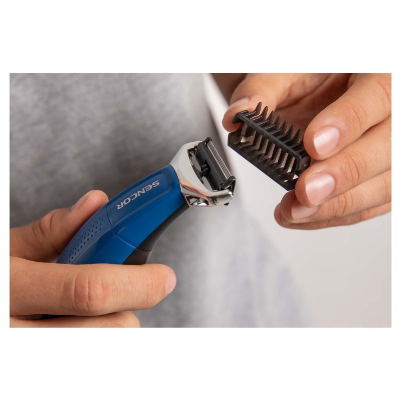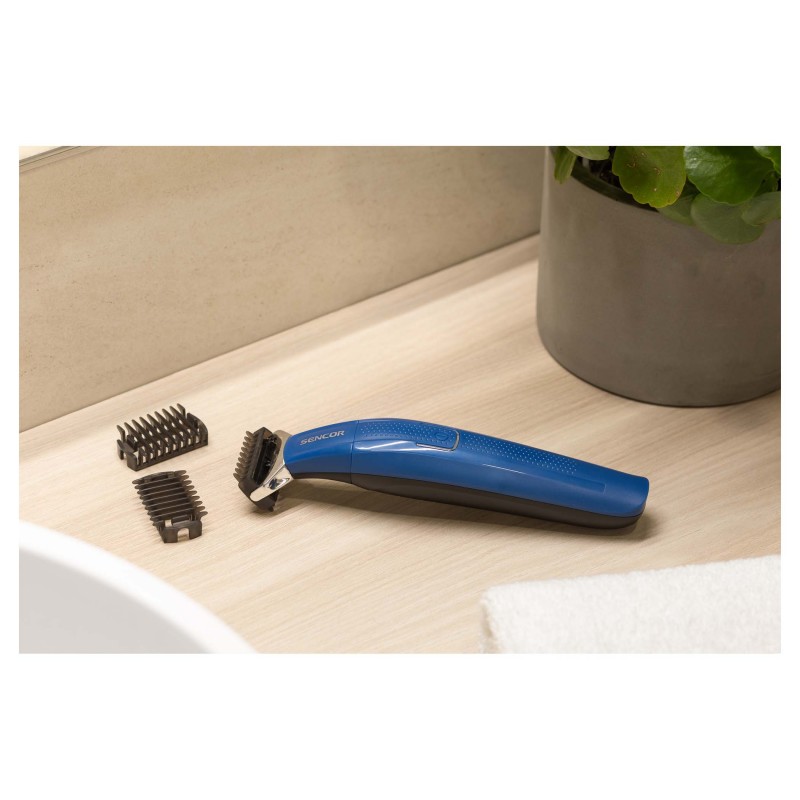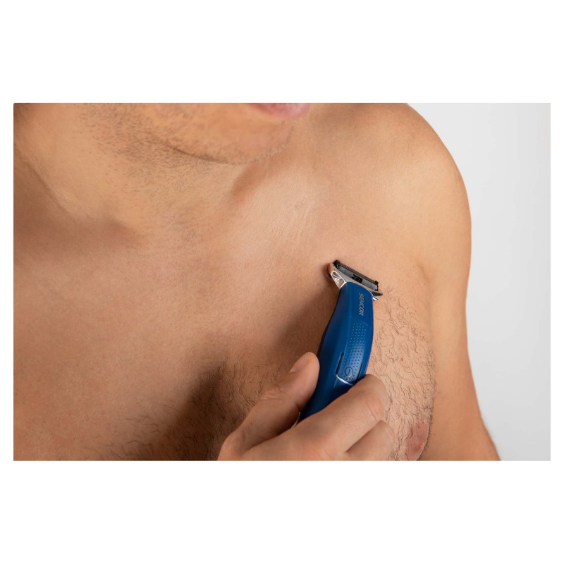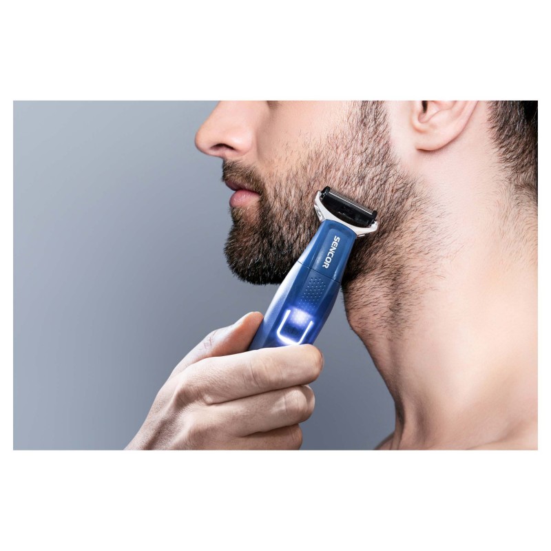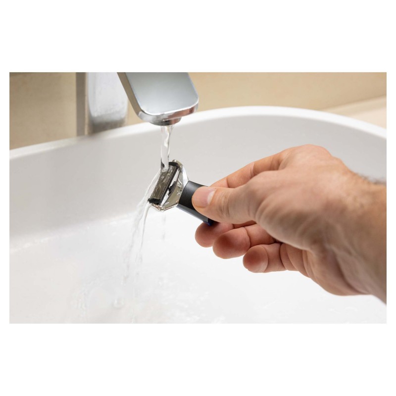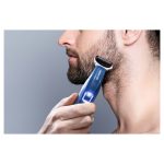 VIŠENAMJENSKA OŠTRICA Tehnologija izravnog pogona omogućuje napajanje izravno iz električne utičnice tijekom punjenja Uređaj se napaja iz baterije Uređaj se napaja iz utičnice dok se puni Uređaj se napaja izravno iz utičnice dok se puni, stoga nije potrebno čekati da se baterija do kraja napuni. Iznimno tih profesionalni brzinski motor osigurava udobno šišanje čak i gustih brkova, kose i brade. Oštrice od nehrđajućeg čelika 3 zamjenjiva nastavka visine 1 / 3 / 5 mm Ergonomska drška sprječava klizanje u ruci Vrijeme rada na bateriji 45 minuta Tehnologija brzog punjenja omogućuje potpuno punjenje za samo 2 sata Prekidač za UKLJUČIVANJE/ISKLJUČIVANJE Ugrađena Li-ionska baterija kapaciteta 500 mAh Priloženi dodaci: Brijaći aparat 3 vodeća češlja 1, 3, 5 mm Mikro USB priključak s punjačem USB adapter Četkica za čišćenje Dužina kabela napajanja: 105 cm Masa: 103 g Dimenzije (visina × dubina × širina): 165 × 50 × 37 mm