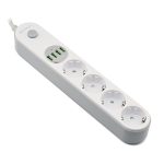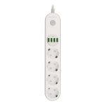 Produžni kabel sa zaštitom SRXP-PS44W, 4 utičnice, 4x USB 4 shuko utičnice UlazniNapon 100-240V, 50-60HzIzlazni napon (ukupno) 2500W – 10A4 USB priključka (5V-3,1A) (Automatski maks.) 17WAmperaža USB ulaza (maks.) 3,4AID funkcije automobilaAntistatičkiGumb za uključivanje / isključivanjeDuljina kabela za napajanje 2mBoja : bijela