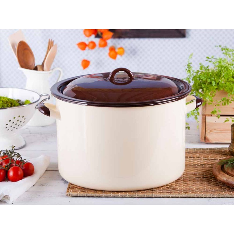 Praktičan, veliki lonac za kuhanje i konzerviranje staklenki Silesia Rybnik. Dimenzije lonca :kapacitet – 13,6 lpromjer – 30 cmvisina – 20 cm Emajlirani lonac je izdržljiv i otporan na koroziju . Ne sadrži nikal, pa je potpuno siguran za osobe s alergijom .