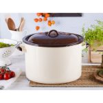Dimenzije lonca:promjer – 30 cmvisina – 25 cmkapacitet – 16,6 litara Ne sadrži nikal pa je potpuno siguran za osobe s alergijom . Trajan i otporan na koroziju . Pogodno za sve vrste štednjaka . Njegov staklasti premaz ne reagira s kiselinama ili drugim hranjivim tvarima, tako da u njemu možete sigurno kuhati i spremati sve vrste hrane . Jednostavno održavanje, može se prati u perilici posuđa. Posebno će biti korisni za pripremu džemova, kuhanje juha ili gulaša . Možete ga koristiti za kuhanje i očuvanje staklenki.