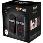 Izlazna snaga: 5W RMS Ulaz napajanja: USB 5V DC / 1A Elegantni 2.0 stereo zvučnici minimalnih dimenzija, napajani putem zajedničkog USB sučelja Idealno za poboljšanje zvučnog iskustva vašeg prijenosnog računala, netbooka ili računala USB napajanje Senzor dodira Bluetooth 5.0 Zvučnička jedinica: 2,5 inča x2 Impedancija: 4Ω Frekvencijski odziv: 80Hz ~ 18KHz Omjer signala i buke: ≥90dBA Bluetooth verzija: 5.0 Maksimalna snaga odašiljača od 100 mW pri 2,4 GHz – 2.4835 GHz Duljina kabela za napajanje: 1,2m Duljina audio kabela: 1.2m (3.5mm utičnica) Duljina satelitskog kabela: 1.2m Dimenzije: 80 x 95 x 155mm Težina: 817g